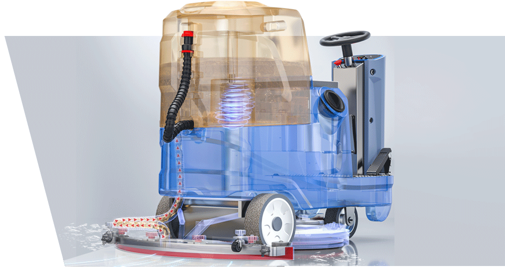 小型高效駕駛式洗地機(jī),選配水槍駐車系統(tǒng),大動力吸風(fēng)電機(jī),大容量清污水箱,品牌電池持久續(xù)航